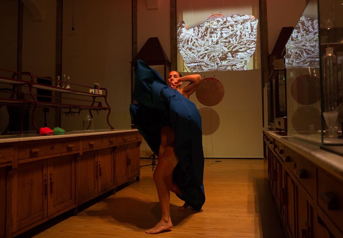 Washing anything is a timeless purification ritual. It is also a symbol for the cleaning and purification of the behavior of the psyche, as well as the cycles of life-death-life renewal. In Observar os sons da lua e da água. E os que vêm de dentro, the performative gestures of a woman’s body that washes and scrubs, guided by the archetype of Hestia, who personifies the “guardian of the house”, are subverted here: in frantic and powerful gestures performed sometimes with frictions of a body that sweeps the floor, now, with clothes that wash the back, the dress that gives back the moon’s shine, the sleeve of a coat that rubs the thighs and pubis, and, the hair that strokes the hands. The sounds, produced and amplified, looks like the howling of a wolf, the gnashing of teeth, the squeak of a door, along with the drumming of the adufe (portuguese percussion musical instrument) and the voice of the tradicional singer (cantadeira), lead to a ritualistic journey — to a world below the trees.